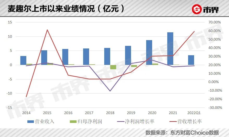 麦趣尔的辉煌,停留在了上市之前。此后,麦趣尔长期面临经营困境,增收不增利,还因连续亏损被*ST。