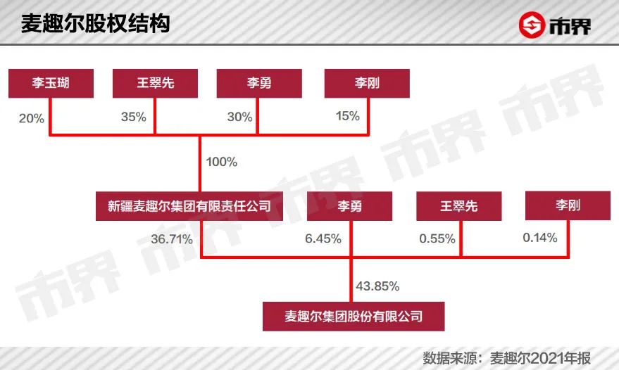 截至2021年年末,麦趣尔的实际控制人仍为李玉瑚家族——合计持有麦趣尔43.85%股权。