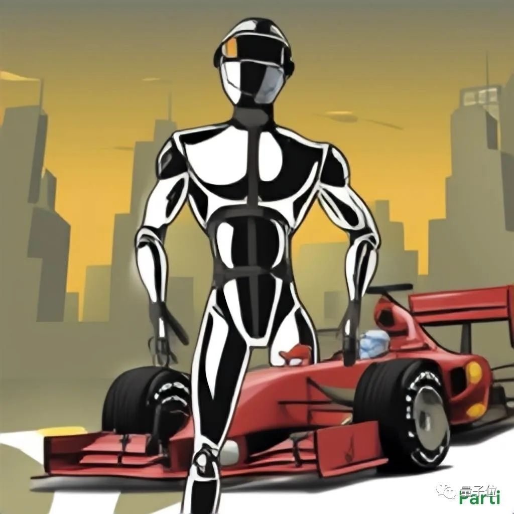 还会犯一些常识性错误,例如不合理地缩放。比如这张图,机器人竟然比赛车高出好几倍。