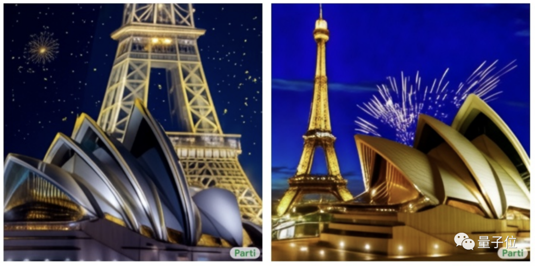 例如,跟它说句:“把悉尼歌剧院和巴黎铁塔做个结合”,输出结果是这样的: