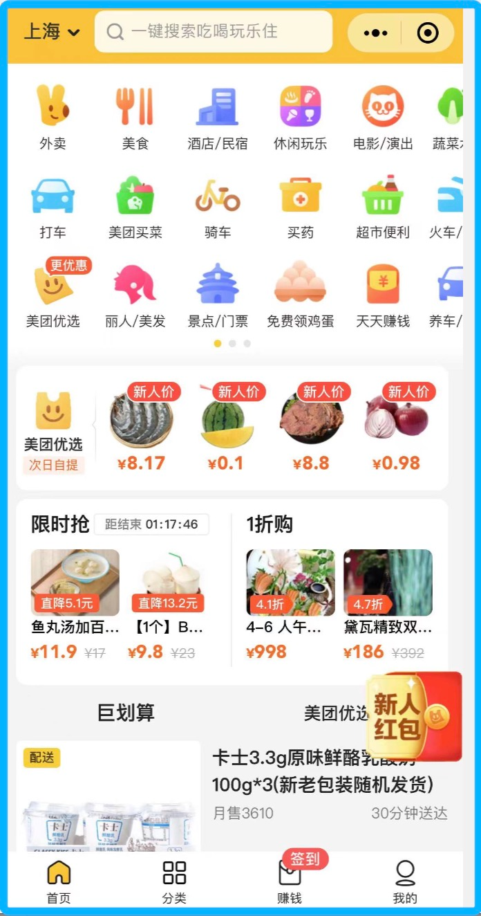美团尚未设置零售业务独立入口