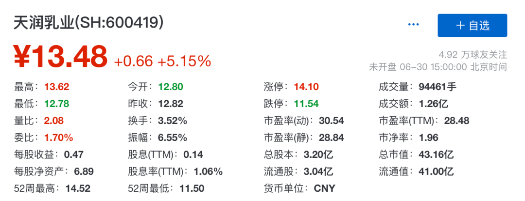 需要特别指出的是,这次官方抽检了四款新疆牛奶,麦趣尔的两款都有问题,而同为新疆奶的天润和新农则没有检出问题。甚至,在麦趣尔股价跌停的同时,天润的股价却一路走高,截至昨日收盘大涨5.15%至每股13.48元。