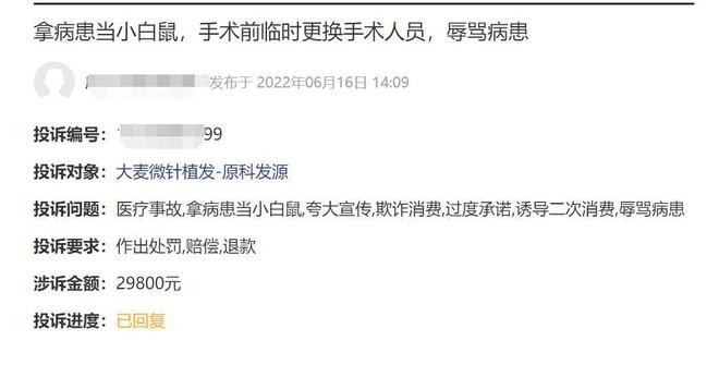 另外,更为重要的是,改善自身在用户群体当中的品牌形象。公开资料显示,关于大麦植发的用户口碑存在一定考量。大麦植发曾被消费者指出存在"幽灵手术"之嫌,此外,大麦植发的服务问题还在今年4月份被中国消费者报“点名”。