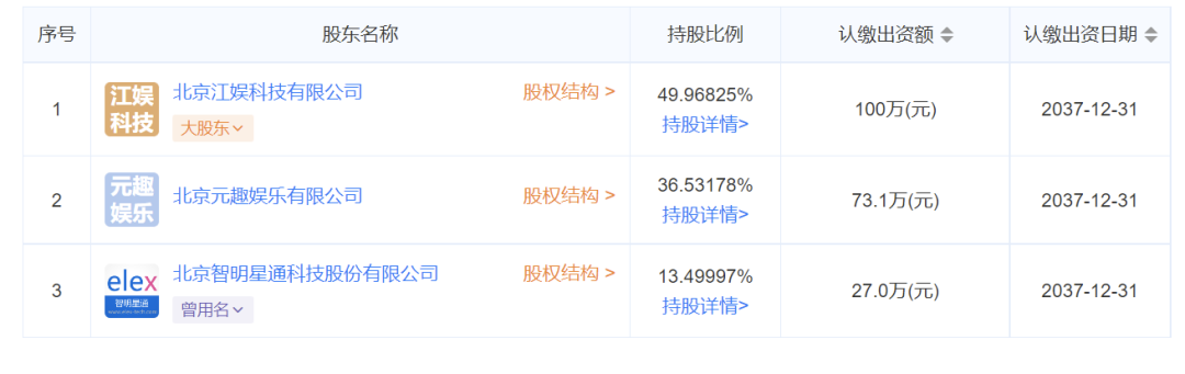 后来,江娱互动的股权历经多次变更,目前仅有元趣娱乐和智明星通两大外部股东。而元趣娱乐正是由前智明星通总裁、联合创始人谢贤林创办的游戏公司。