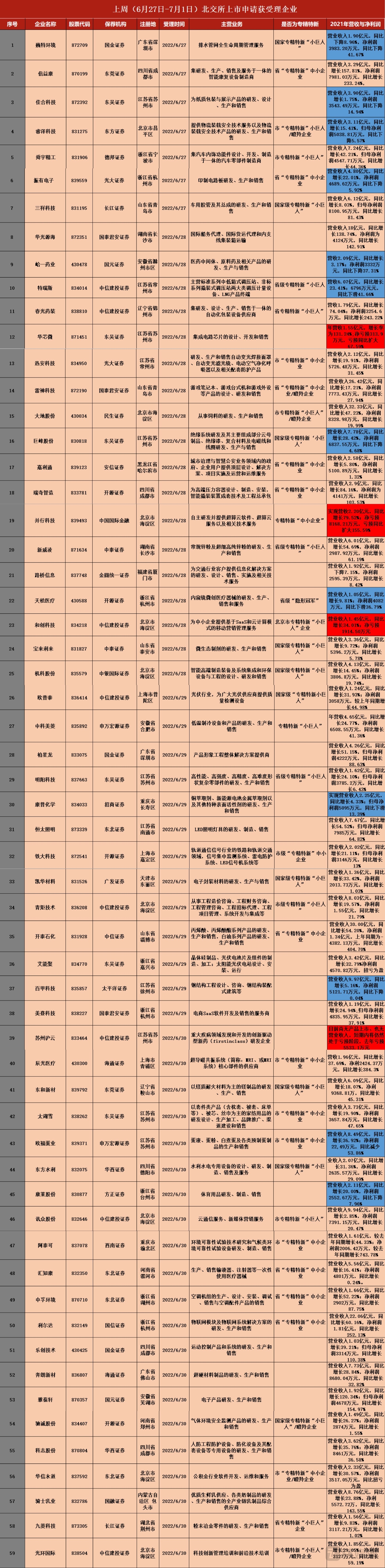 据钛媒体统计,上周北交所IPO申请获受理的59家企业中,有近七成企业属于省或市“专精特新”企业/小巨人。从地区来,江苏获受理企业最多达11家,北京次之,有10家,浙江8家,四川有5家,山东4家,广东、安徽和上海各有3家,湖南、河南、重庆、辽宁四省均为2家,黑龙江、福建、内蒙古和湖北各1家。