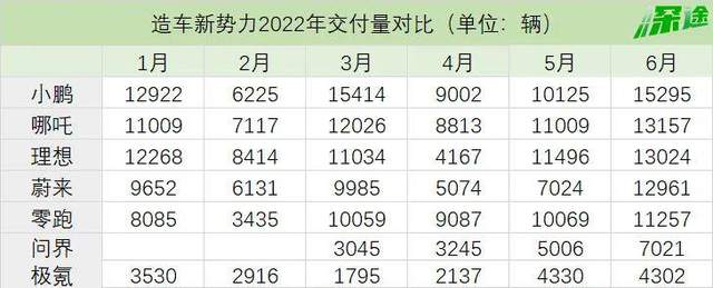 追赶者哪吒、零跑在6月的表现依旧不错。尤其是哪吒,竟然超越了蔚来和理想,交付了13157辆,在造车新势力中排名第二。