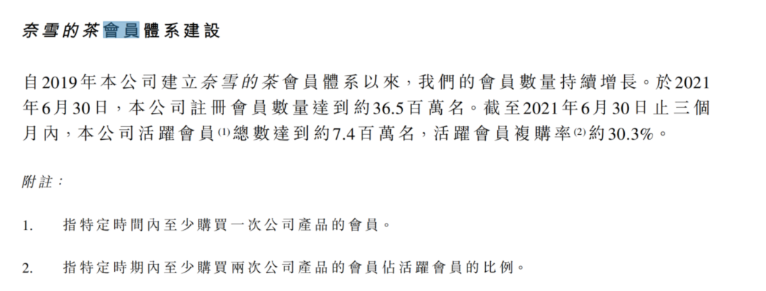 根据奈雪2021年财报披露的数据,品牌已经在不到1000家门店的情况下,积累了3650万会员,活跃会员为750万,他们的复购率超过30%。