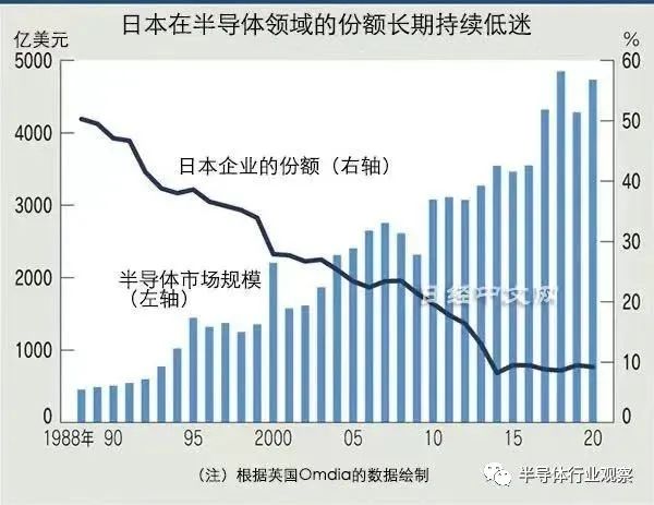 在一连串的压力面前,日本政府开始后退,相继签署各类条约,其中最属《美日半导体协议》杀伤力最大。这段特殊的历史成了日本半导体产业跌落神坛的重要拐点。自此,开启了日本半导体产业衰退的标志。