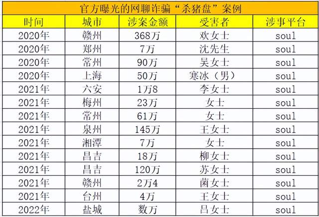 还有就是陌生人社交始终无法避免的「杀猪盘」。网上有关警方曝光的杀猪盘案例就有不少出自Soul,其中以女性受害者居多,涉案金额近900万。