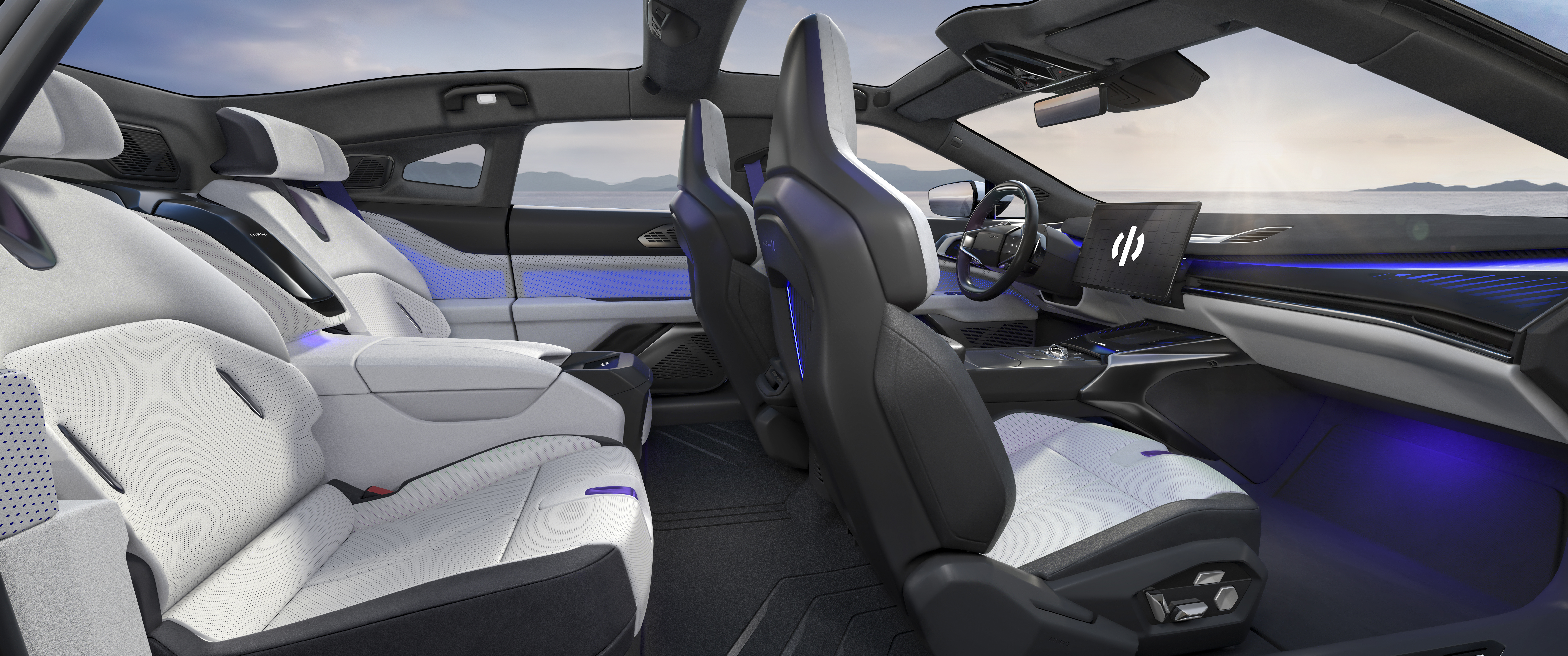 双调性数字座舱的全新概念在HiPhi Z上首次被提出。在前排的星舰驾驶区域内,赛车桶椅配合一体式头枕,让驾驶者在城市中也能体验到GT的驾控快感。后排是可调节靠背角度的环绕包裹式座舱,提供了良好的包裹与支撑体验。高合将赛博朋克的机械操控感与沉浸式的舒适惬意融合,对比与冲突在HiPhi Z上达到空前平衡。