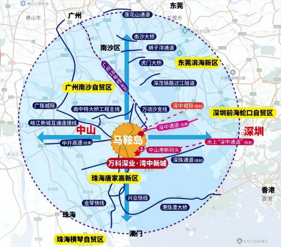 向东是东莞滨海湾,向北是广州南沙,向南是珠海横琴,马鞍岛的重要性不言而喻。