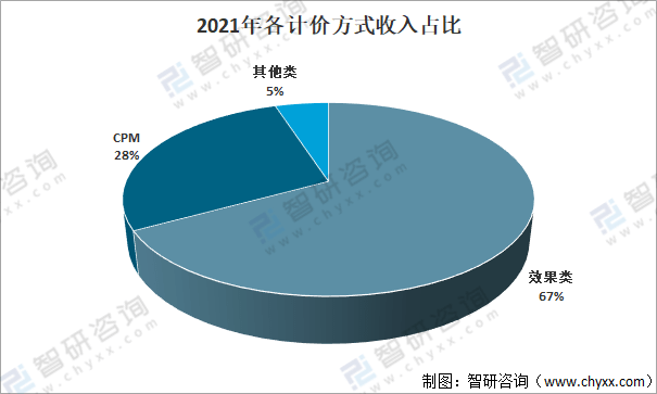 这符合市场的整个行情,根据智研咨询做的统计显示,2021年中国互联网广告从计价方式收入占比来看,效果类占比67%,CPM类占比28%。