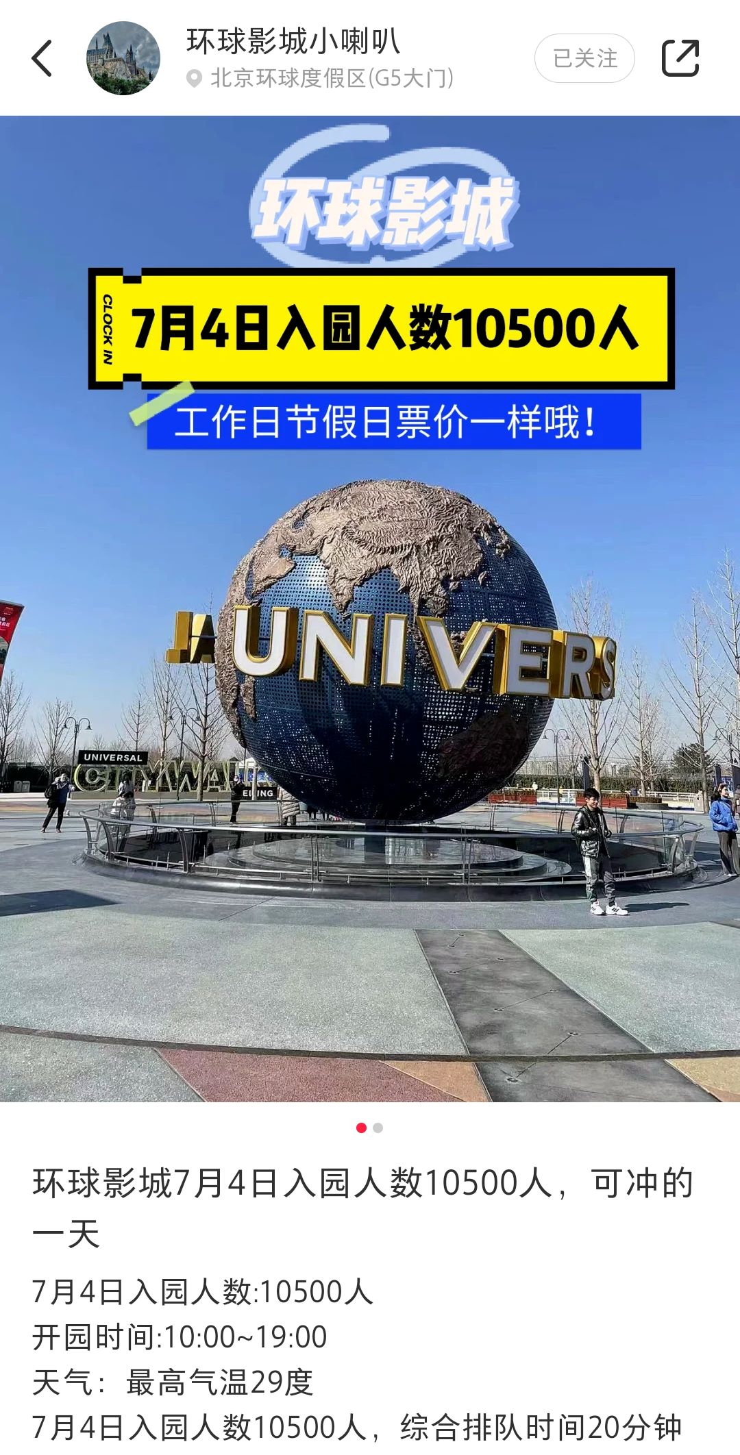 到达现场的营销娱子酱发现,“自由”后主题公园们的客流量正在陆续回升。拿环球影城为例,据小红书旅行博主@环球影城小喇叭 估算显示,6月25日周六,环球影城入园人数约6900人,到7月4日,虽然是工作日周一,但入园人数已到约10500人。