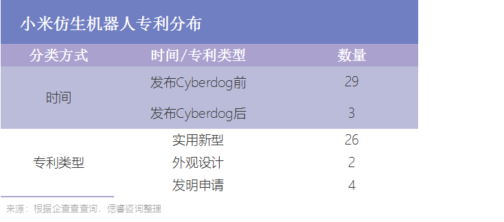 从时间上看,32件专利中绝大多数申请于Cyberdog发布(2021.8.13)之前,只有3件申请于发布之后,似乎侧面反映了小米机器人的研发停滞。