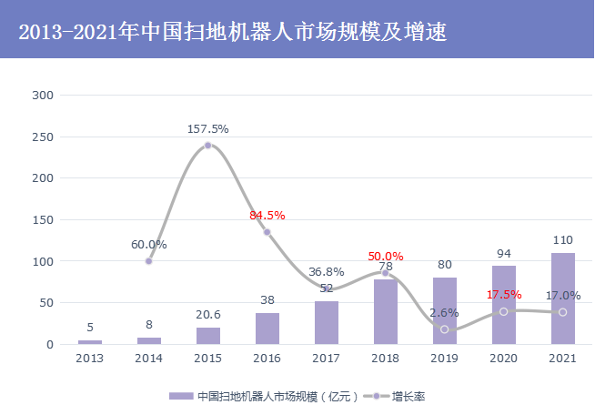 直到2013年,多个厂商将传感器(激光雷达或摄像头)应用在扫地机器人上,使扫地机器人由随机碰撞时代步入全局规划时代,扫地机器人才正式走入中国市场,开始稳步增长。
