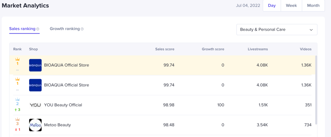 近日,一个美妆个护品牌 BIOAQUA 被广泛关注。店铺总 GMV 位居 TikTok 小店首位。笔者成稿前,在 TikTok 销量排名靠前的店铺 Top10 中,BIOAQUA 排在当日第 1 位,当日 GMV 为 6.8 万+美金。而据统计,截至 5 月底,BIOAQUA 总 GMV 达到 985 万美金。