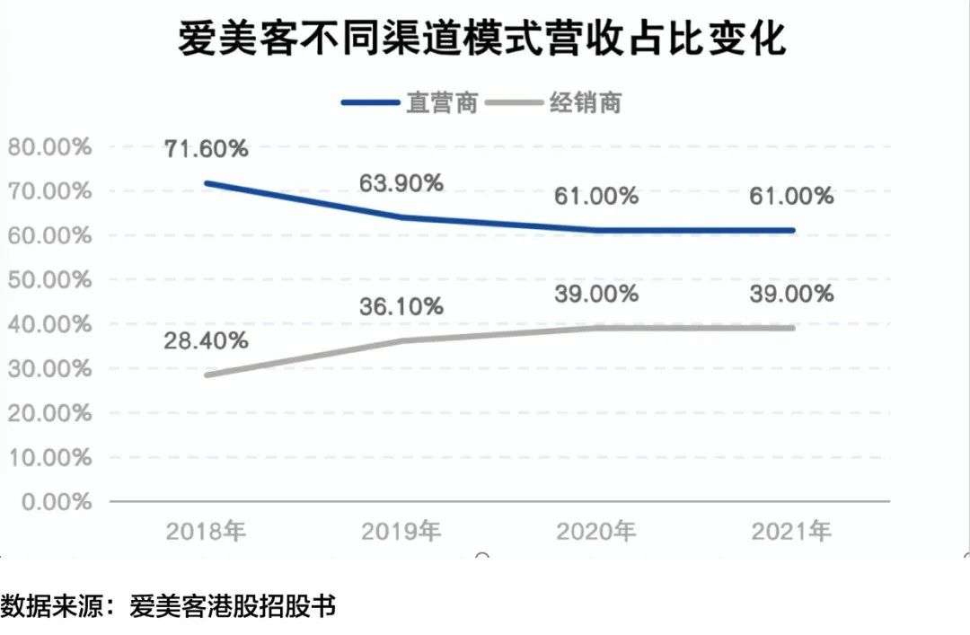 而在渠道方面,近年来为了迅速扩大规模保持高增长,爱美客在“直销”模式上也有所松动。港股招股书显示,2018年至2021年间,爱美客经销商收入占比从36.1%上升到39%,2021年新增经销商数量接近2018年的三倍。