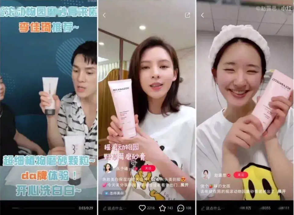 同时,也选择与当红的女星赵露丝进行合作,收获粉丝流量。再通过直播带货的方式,通过投放李佳琦直播间,来提升品牌的曝光量与销量。