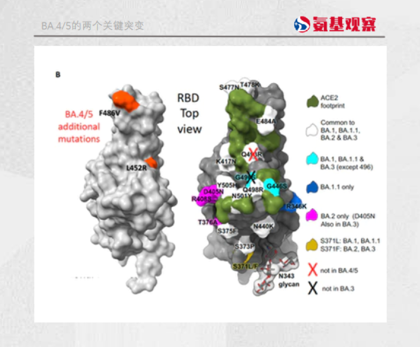 L452R曾经出现在上一代突变王者德尔塔中,如今在BA.4/5中再次发现了这一突变。
