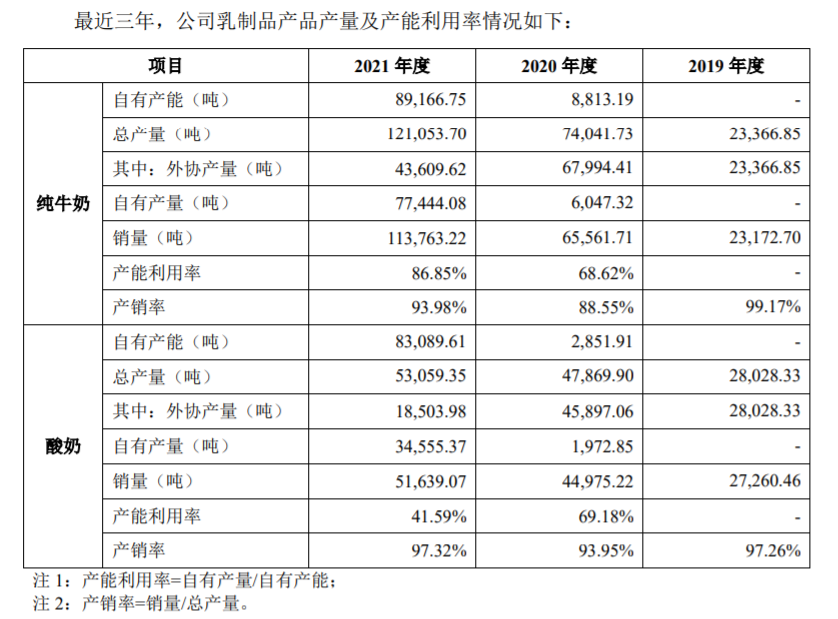 招股书显示,认养一头牛在2019年所有的纯牛奶和酸奶都由外协公司生产,2020年仍有90%以上的纯牛奶和95%以上的酸奶都由外协工厂生产。