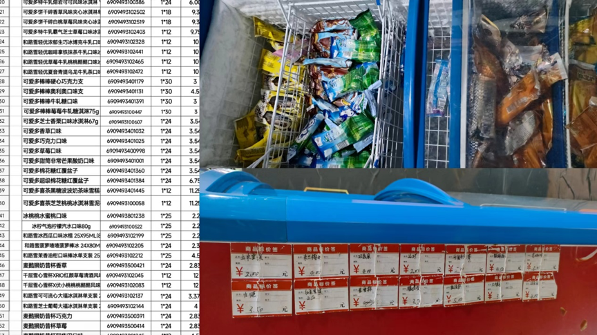 锌刻度在该校另一处超市里发现,售卖的多是可爱多、旋顶杯、巧乐兹、冰工厂等单价在2元到5元之间的雪糕,且冰柜上都有明确的标价。