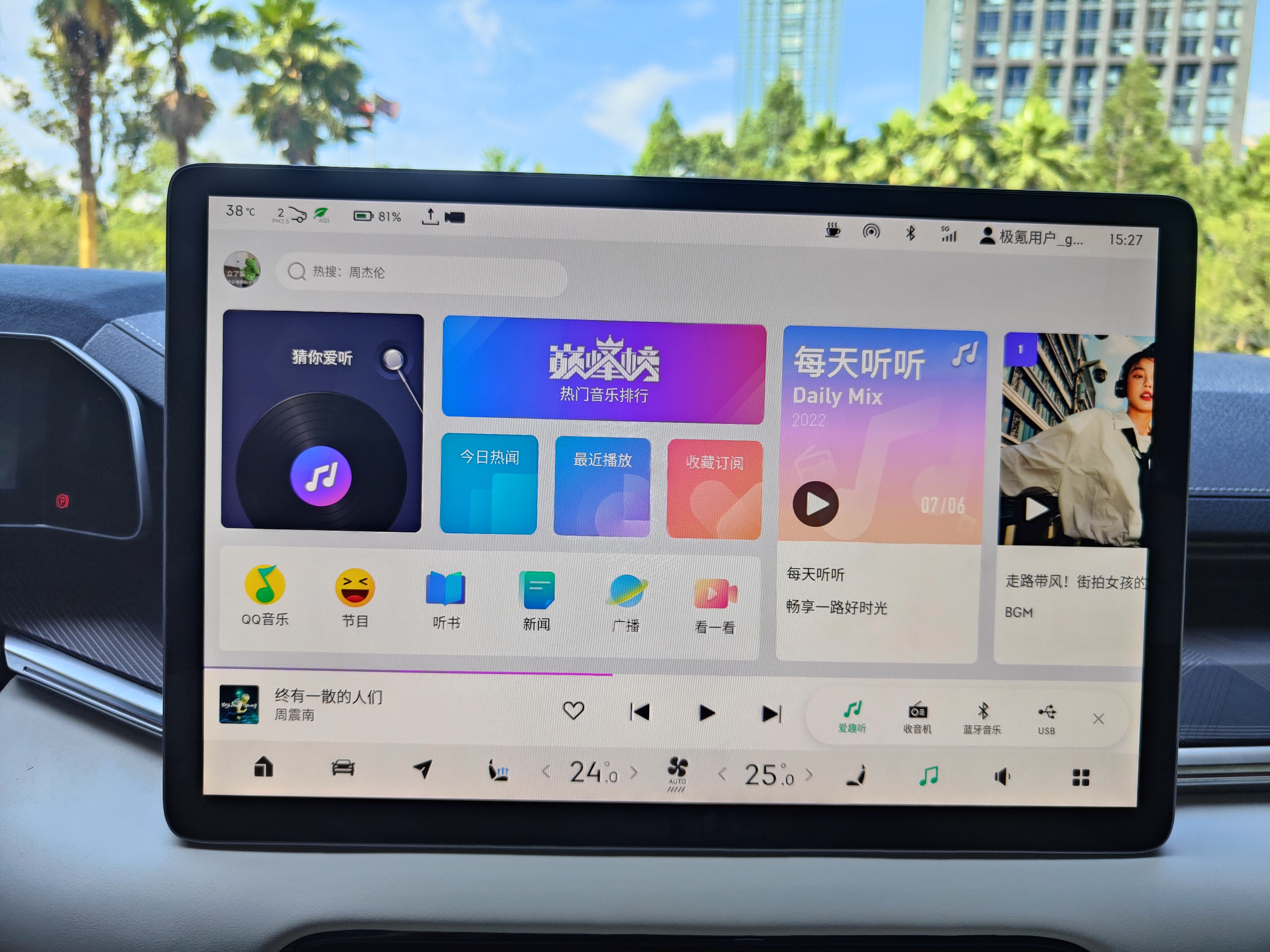 在车载APP方面,ZEEKR OS 3.0版本主要针对音频软件进行补强。从此前单一的酷我音乐升级为腾讯爱趣听,涵盖了QQ音乐、听书、新闻、广播、看一看、有声节目等更为丰富的内容。同时,ID账号可与爱趣听应用账号绑定,实现同登同退,简化操作保护隐私。