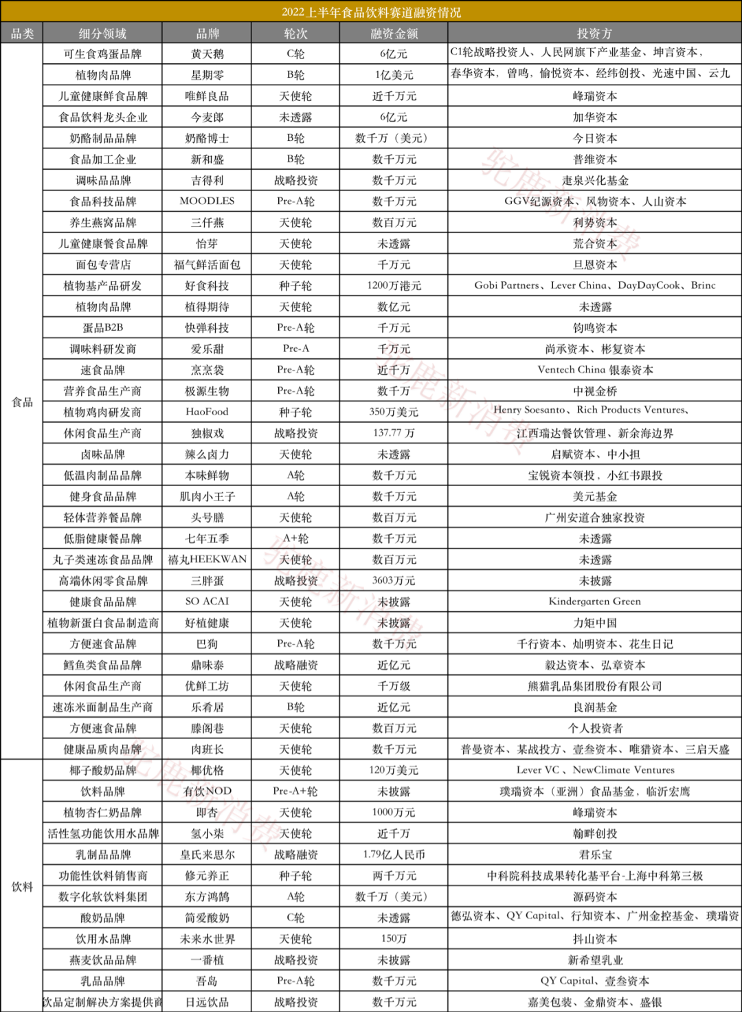 根据报告中相关细分赛道的详细投融资情况,驼鹿新消费将推出系列解读文章,全面盘点和解读各个赛道的发展趋势。本篇文章将聚焦食品与饮料赛道。以下是详细解读: