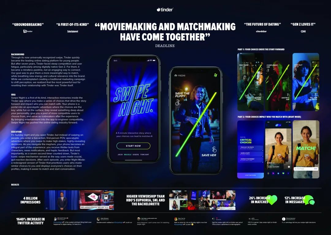 Tinder正试图让自己变得更具发现性和互动性,比如在2019年推出的互动冒险游戏“Swipe night”让用户第一视角感受世界末日情节,可以左滑右滑来选择故事走向,比如“你会救狗狗还是救人?”