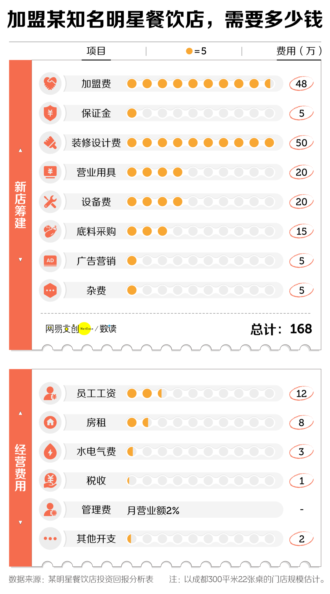 以在成都筹建新店为例,至少需要 168 万。