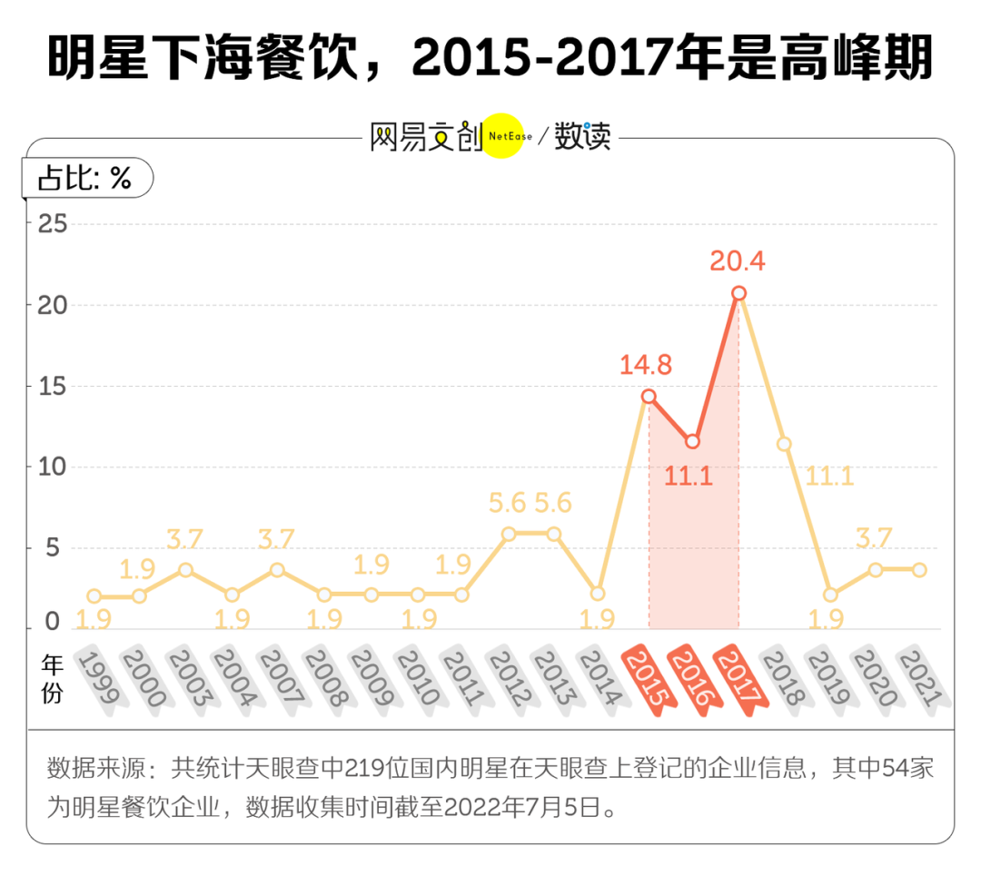 到了 2015-2017 年,明星餐饮公司成立数量激增。