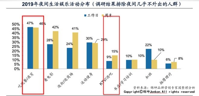 但在餐饮渠道中,夜间餐饮消费增速最快,餐+酒模式占据了半壁江山,其中吃晚餐和夜宵、酒吧占据了一半多的时间,需求非常明显。