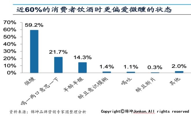根据锦坤品牌专家团队调研,近60%的消费者饮酒时更偏爱微醺的状态。