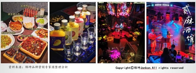贰麻属于行业的另一种模式:创意中式斗酒+地道的成都鬼饮食=打造具有中国味道的酒馆文化,有着极强的产品体验和消费体验。