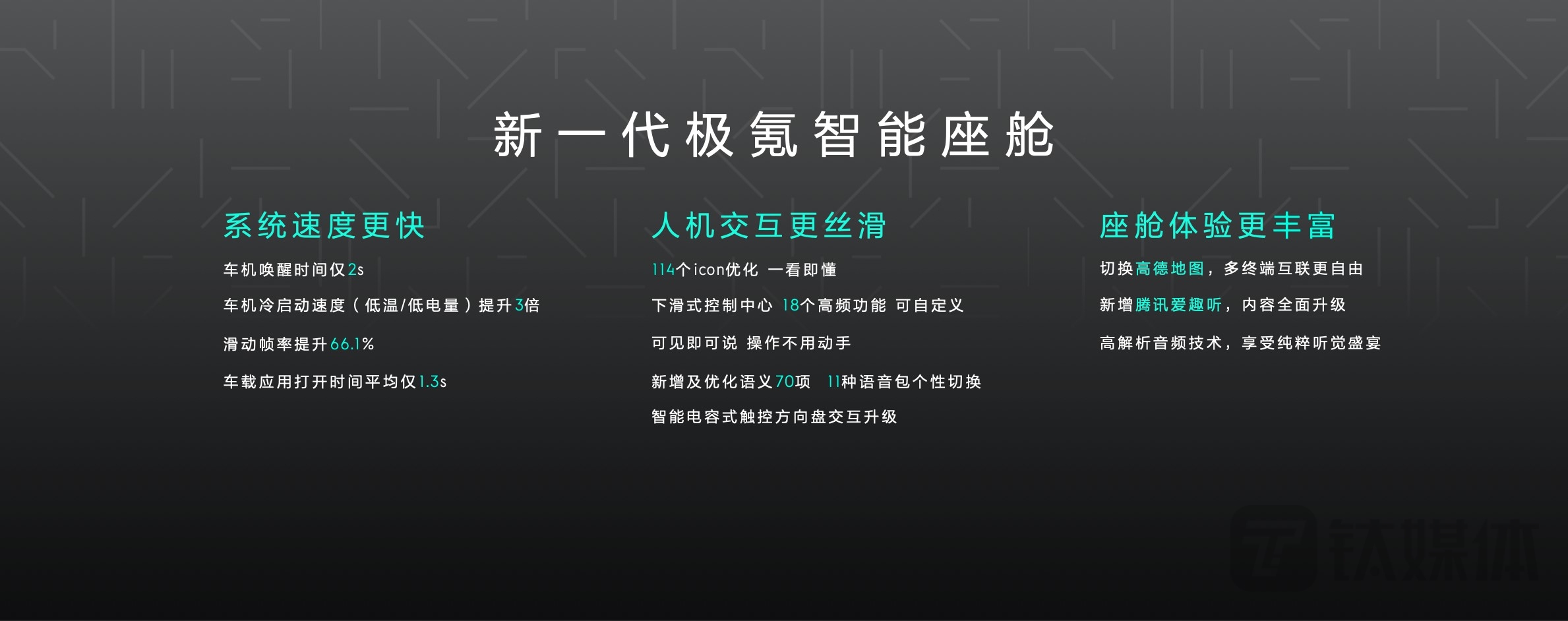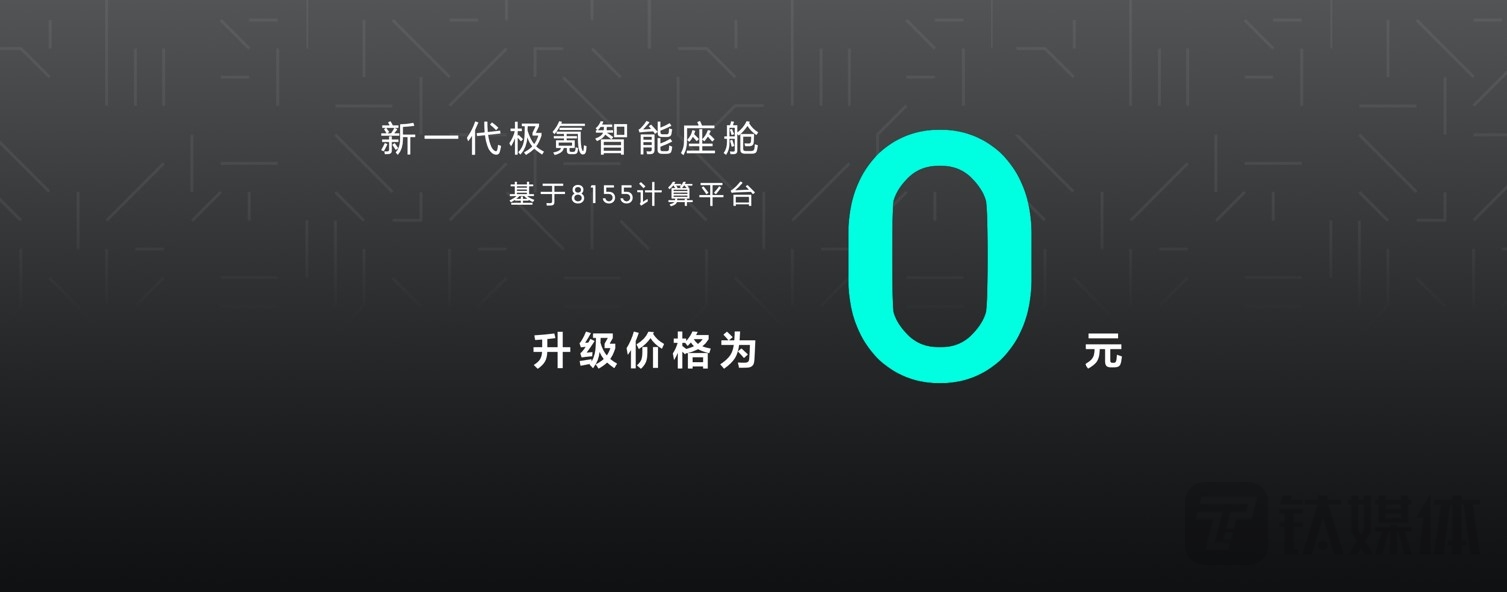极氪汽车CEO安聪慧对钛媒体APP表示,按照极氪现有的交付与订单数量,从硬件采购、软件开发到物流和售后,极氪针对新一代智能座舱的投入已超过3亿元,这一次新老用户全部免费的升级决策在立项之初便已明确。