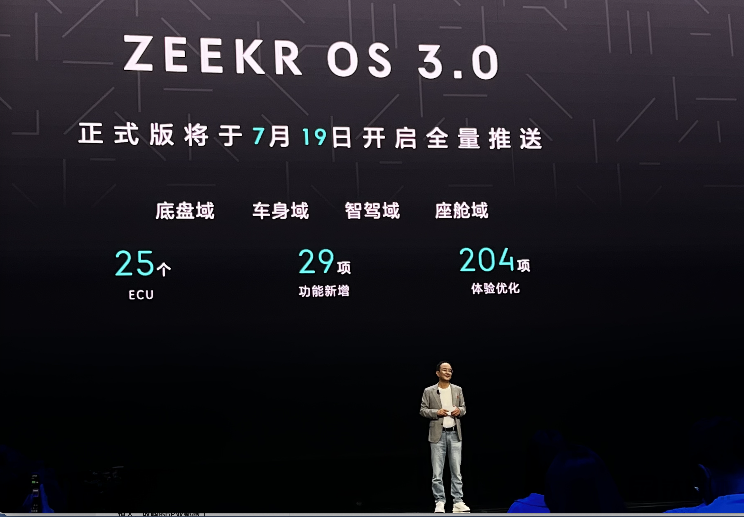 极氪还将从7月19日开启全量推送ZEEKR OS 3.0正式版本,此次更新涉及25个ECU单元,新增29项功能,体验优化204项。
