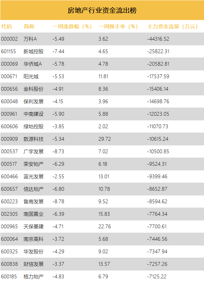 插图 |房地产行业资金流出榜(2022年7月4-8日)