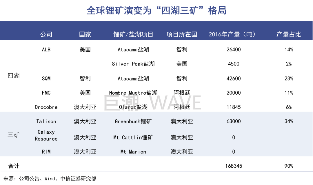 由于新进入者扩产,2017年开始,全球锂矿格局由此前的“三湖一矿”演变为“四湖三矿”。