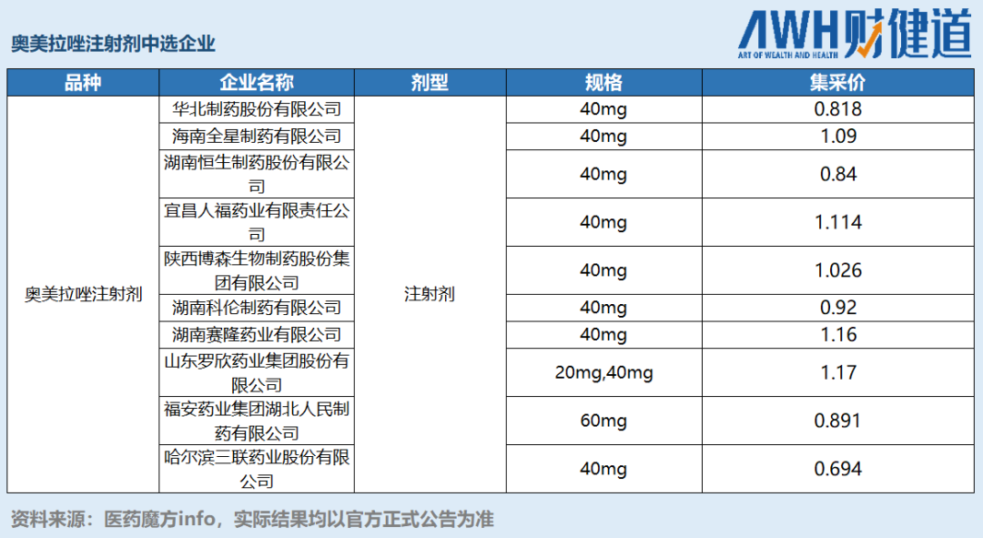 截至发稿,据行业媒体医药魔方info陆续更新的一部分中标结果(实际结果均以官方正式公告为准):
