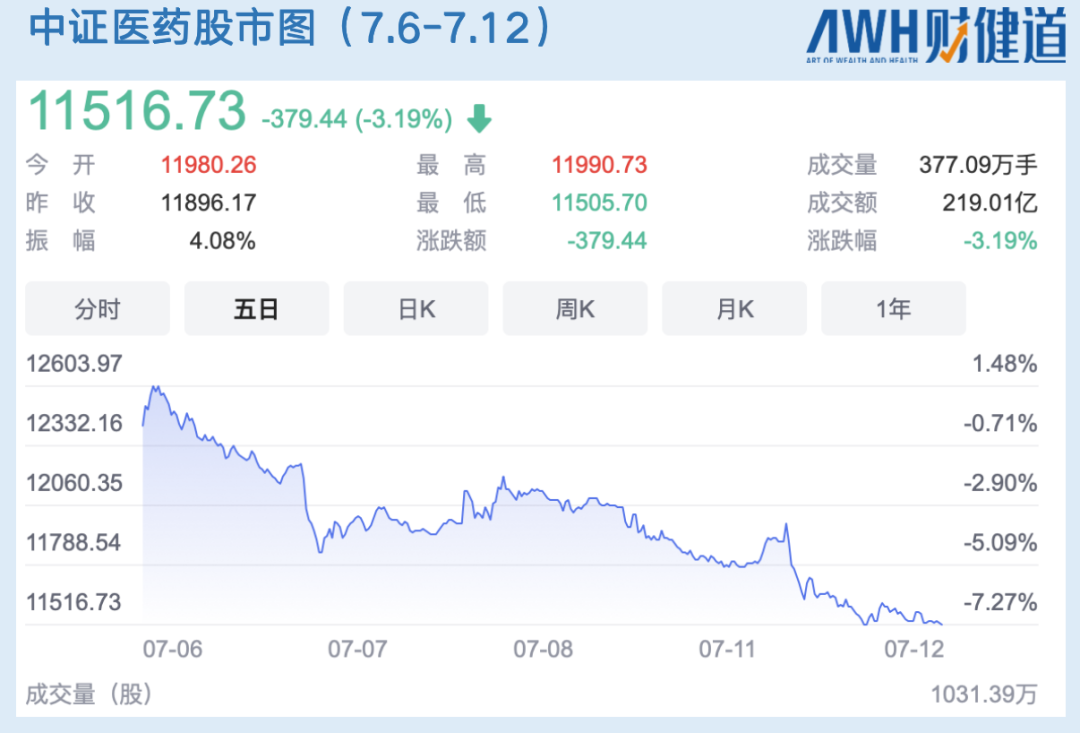 从市场来看, 中证医药股市图仍处跌势。