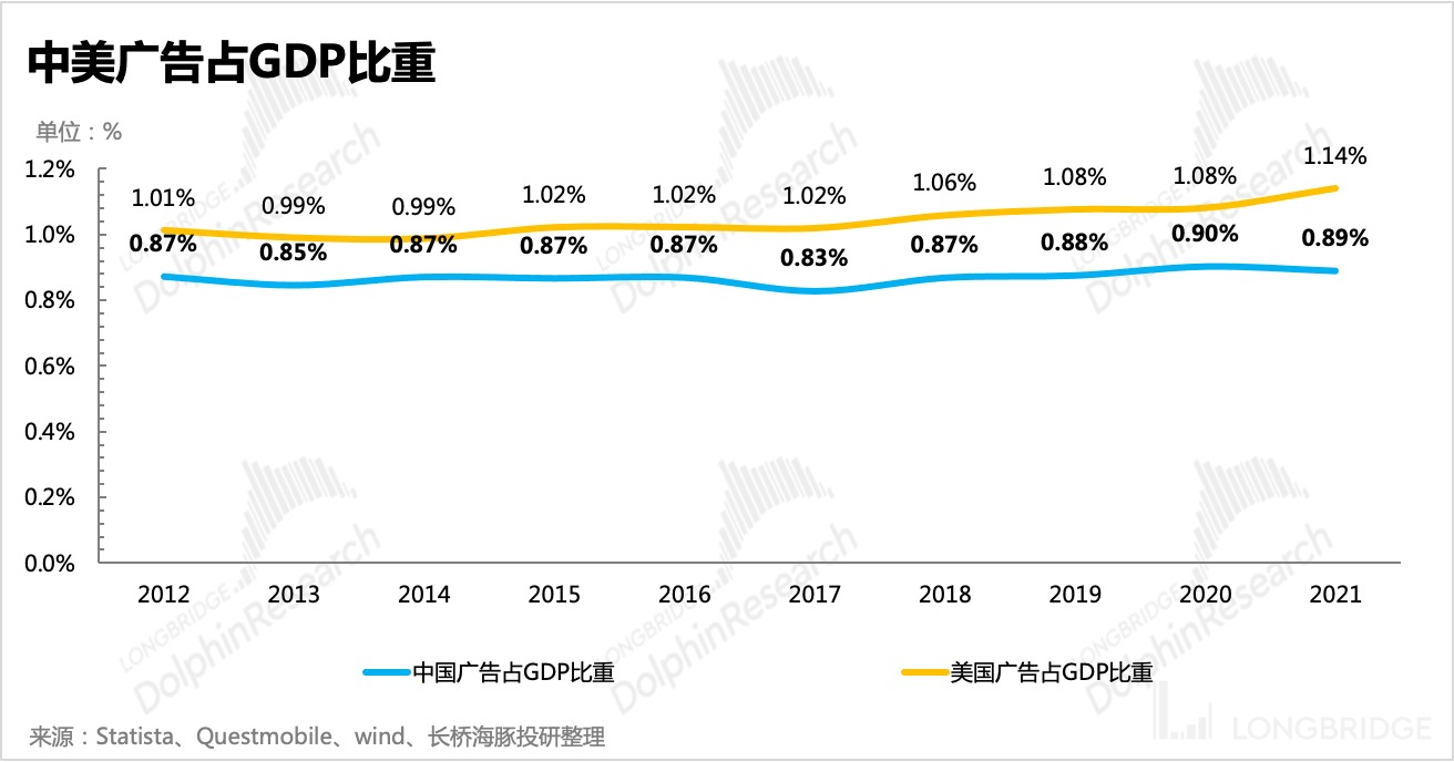 分众作为一只相对纯粹的广告股,会明显受到经济周期的影响。从往年数据来看,中国的广告市场规模基本上占到 GDP 的 0.8% 左右,虽然相较于美国的 1% 还有整体行业的提升空间,但欧美消费巨头对品牌营销的重视度要比国内更高,因此要补上与美国的这点差距,并不能期待短时间一蹴而就,不过从另一面,这也是一个可以支撑增长的长期驱动力之一。