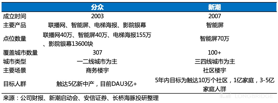 因此它选择错位竞争,采取的是 “农村包围城市” 的进攻路线,不过三四线商务写字楼的流量有限,所以新潮更偏重于三四线社区梯媒这个点位。