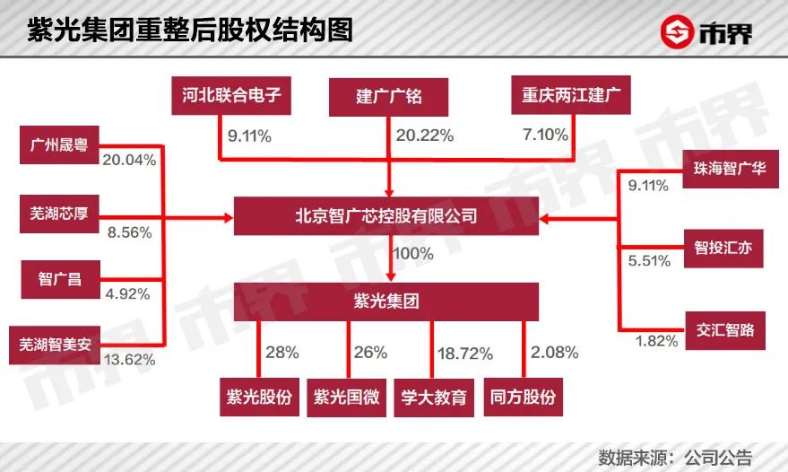 2022年7月11日变更完成后,智广芯直接持有紫光集团100%股权。