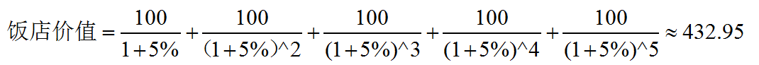 你会看到,这间饭馆虽然都每年都能获得100万的自由现金流,但实际上越靠后年份的100万,由于被贴现了,所以越不值钱,因而整店的现值不到500万。