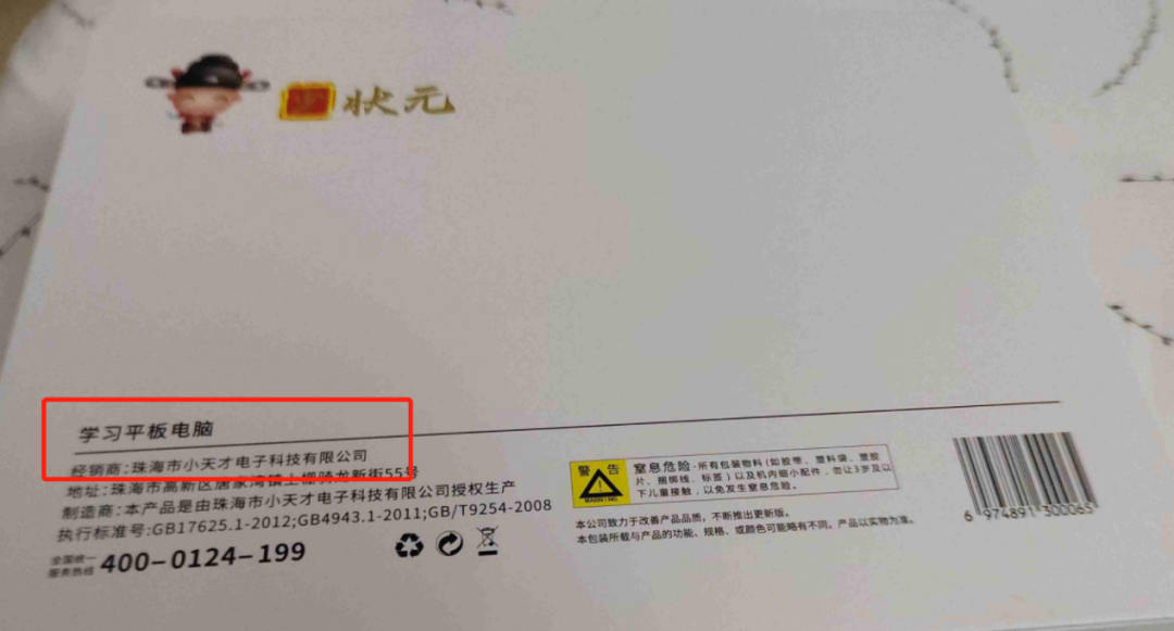 新浪科技看到,该家长晒出的收据和产品包装显示,该学习机生产商为珠海市小天才电子科技有限公司。而正品小天才的生产商为广东小天才科技有限公司,两家企业名称相似,但没有任何股权关系,极易让家长混淆。