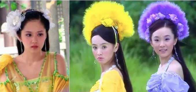 当然,古装剧审美发展也有特立独行的时候。譬如在2000-2010年这个阶段,彼时古装剧市场因受到两岸三地的文化入侵,古装剧妆造大量引用“流行元素”,也成了一个趋势。譬如多部古装剧中女主角曾出现的半团扇造型,《欢天喜地七仙女》中“仙女”们所佩戴的羽毛头饰、以及亮色眼影等,都来自当时时尚圈的流行元素。