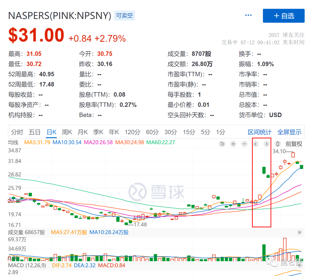 6月27日,腾讯的大股东Naspers/Prosus发布公告称将开启一项长期的减持计划,引发市场恐慌,腾讯股价短时间大跌6%左右。