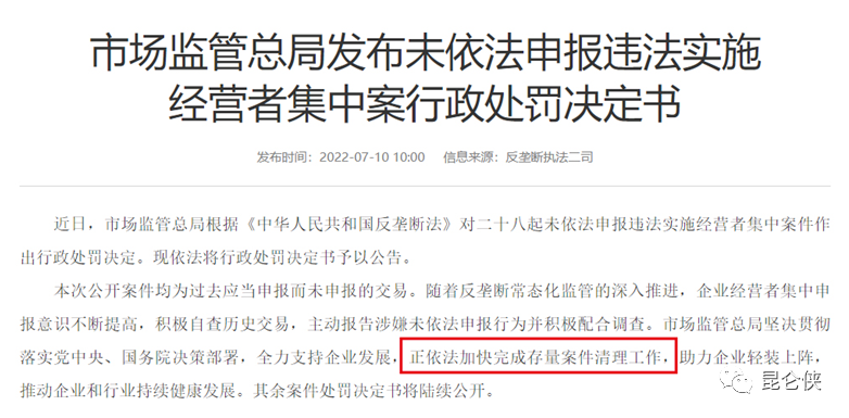 我仔细看了一下,这28起案件都是几年前的收购案了,都是过去时了,而且监管总局官网的通告写得也很清楚,是在完成“存量清理工作”,“助力企业轻装上阵”。 ![]()