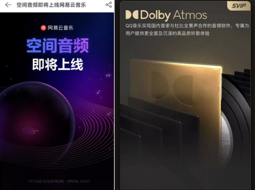 远的不说,网易云音乐7月5日宣布即将上线“空间音频”,紧接着,QQ音乐7月6日官宣与杜比实验室达成合作,成为国内首家支持杜比全景声的国内音乐平台。