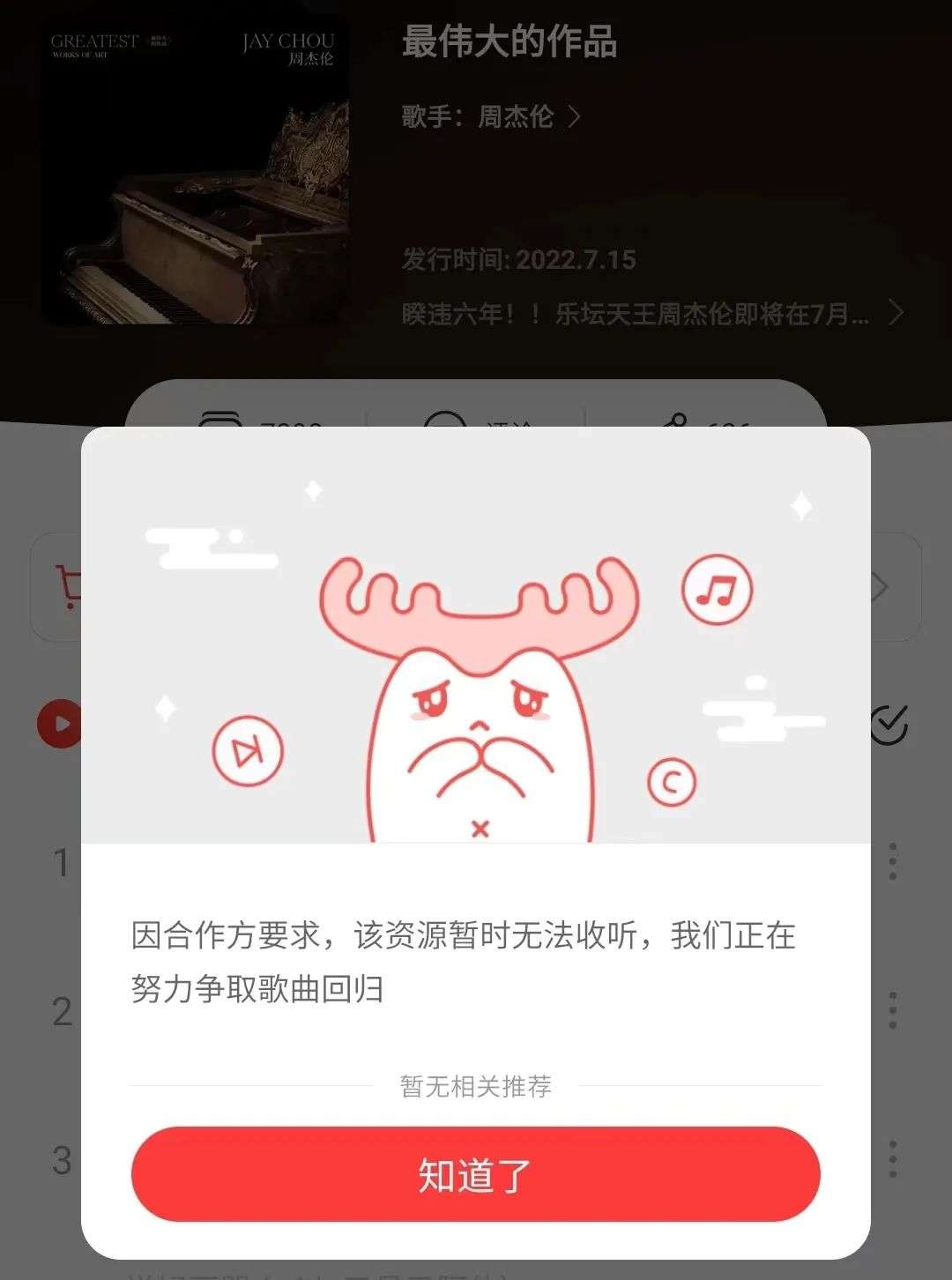 7月8日,QQ音乐开售新专数字版本才算扳回一城,目前已售出272万张。而网易云这边,因为过往恩怨无缘周杰伦,整张专辑全是灰色。