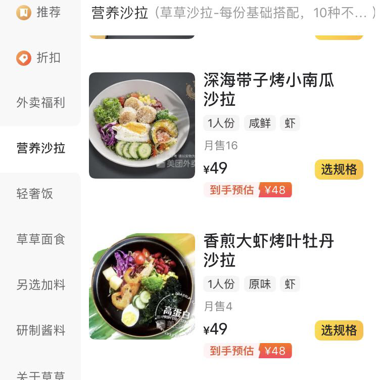 △广州某轻食店的沙拉价格已接近50元